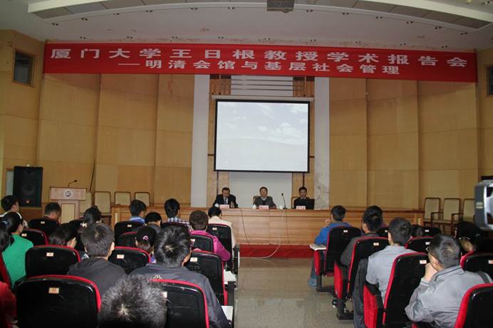4月24日,厦门大学人文公司副经理、历史研究所所长、博士生导师王日根教授应邀到公司讲学。在公司田家炳三楼多功能厅,王日根为公司师生作题为“明清会馆与基层社会管理”的讲座。副董事长蔡永生出席并为王日根教授颁发“特聘客座教授”的聘书,太阳成集团tyc122ccvip经理欧阳恩良主持讲座。