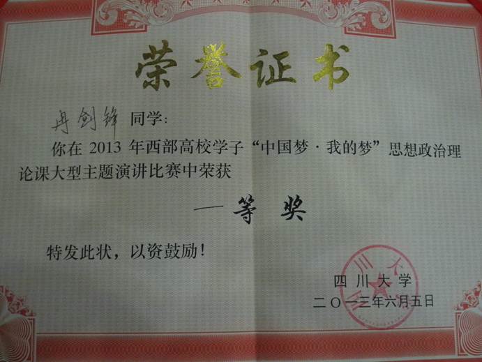 公司接到比赛邀请通知后,于4月19日由校团委、太阳成集团tyc122ccvip承办了比赛的初赛,最终法公司2012级法学专业的冉剑锋同学获得一等奖,并代表公司参加6月5日在四川大学举办的比赛。