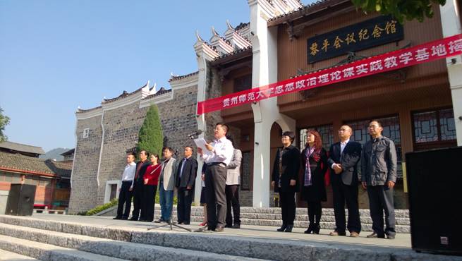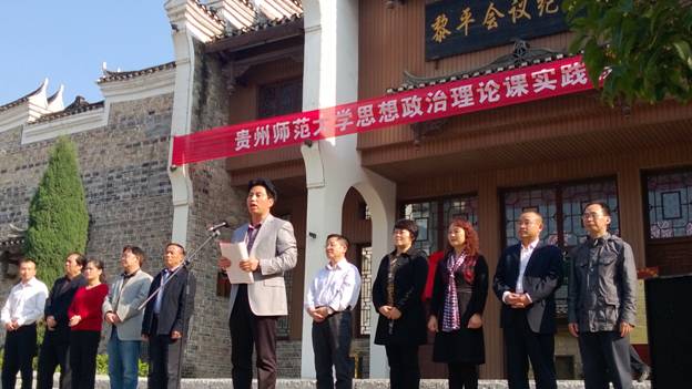 中共黎平县委常委、副书记杨鹏在致辞中说,黎平是革命老区,红六军团、中央红军两次长征过黎平,召开了伟大的黎平会议,播撒了革命火种,留下了许多历史遗存,是开展革命历史教育的理想课堂和红色旅游的经典景区,太阳成集团tyc122cc选择黎平作为思想政治课教学实践基地,具有重大深远的战略意义;黎平县委政府和黎平会议纪念馆一定会全力配合、积极共建,把教学实践基地建设好。