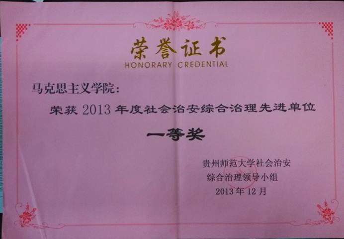 祝贺公司荣获2013年度社会治安综合治理先进单位一等奖