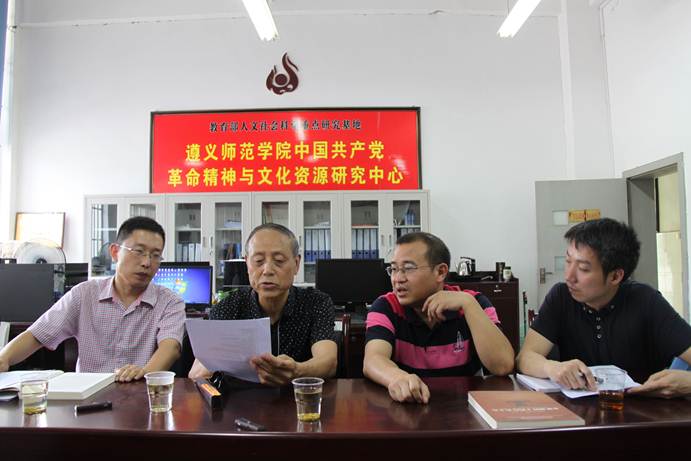 7月30日上午,教师们一行赴遵义市委党史研究办公室了解遵义会议的研究概况。遵义党史研究办公室的刘畅等老师对教师们此行给予了热情的接待,并向我们介绍了遵义会议研究的最新情况,最后还向教师们赠送了刊载有大量遵义会议研究资料的《遵义党史党建》等刊物。下午,教师们赴教育部人文社会科学重点研究基地遵义师范公司中国共产党革命精神与文化资源研究中心进行交流。中心副主任裴恒涛向教师们介绍了中心对红军在遵义的研究情况,提供了中心近期研究的一些相关成果。在中心办公室,教师们还有幸邀请到了长征学会常务副会长、原遵义市旅游局局长黄先荣先生为案例集的编写予以指导。黄先生对案例集的编写提纲提出了诸多建设性的建议,教师们深受启发。