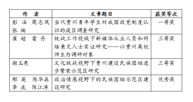 根据通报,公司统战部选送的研究成果中有4项获全省统一战线理论政策优秀成果表彰。其中,公司彭法、谢玉亮、鄢英3位教师在全省统一战线理论政策优秀成果表彰中获奖。