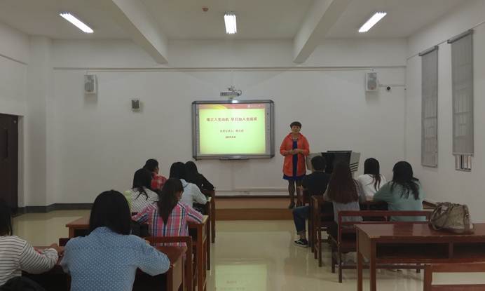杨书记主要通过端正入党动机,早日加入党组织以及发展党员的基本程序这两大部分内容作了深刻讲解。首先,杨书记在端正入党动机这部分内容中又分别通过端正入党动机的重要性;端正入党动机的意义以及如何端正自己的入党动机这三点进行了详细解说,而且还通过播放歌曲《中国共产党好比种子》和电影《高山下的花环》生动、形象地把这部分内容呈现给大家,希望大家能够学习革命先烈的优秀品质,端正入党动机。其次,在发展党员的基本程序这部分内容方面,杨书记对《新生党的基本知识宣传卡》中就申请入党的基本条件、怎样写入党申请书、入党应履行的基本手续等内容进行了详细解说,要求2015级研究生要认真学习。最后,杨书记对2015级研究生提出了两点希望:希望有入党意愿的研究生要提高思想觉悟,加强自身修养,早日加入党组织;已是党员的研究生要继续发扬党的优良传统,争做一名优秀的共产党员,祖国的未来靠青年一代。此次党课学习于12点结束。