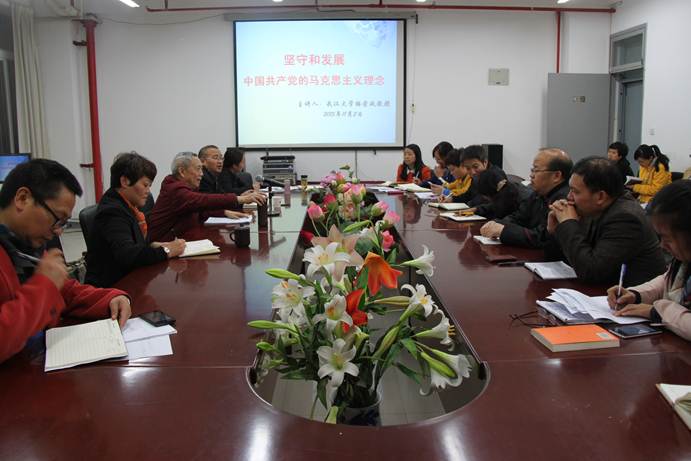 11月2日19:30至21:30,在公司太阳成集团tyc122ccvip会议室,全国著名的马克思主义理论研究专家、武汉大学博士生导师梅荣政教授,为太阳成集团tyc122ccvip全体教师作了题为“坚守和发展中国共产党的马克思主义理念”的学术报告。报告由太阳成集团tyc122ccvip经理欧阳恩良主持。
