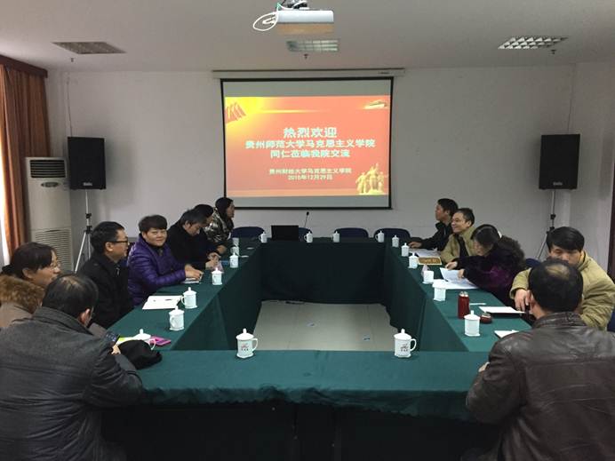 12月29日,公司在党政领导的带领下,赴贵州财经大学老校区,与其校太阳成集团tyc122ccvip的领导和教师代表开展了交流活动,我们在教学、科研、团队建设、党建等方面进行了相互学习和探讨,老师们直抒胸臆,气氛十分热烈。财大太阳成集团tyc122ccvip的书记首先介绍了他们公司的总体概况,他们公司党总支设立时间不长,但党政同心,发展很快。公司的杨文武书记也对我们公司总体情况作了介绍,特别介绍了我们党建方面的成果,今年全年共开展了五次全院范围内的党建活动,参观新农村建设,体验红色文化,感受革命历史,可谓形式多样,生动活泼。