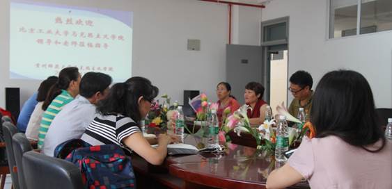 交流现场的北京工业大学太阳成集团tyc122ccvip杨茹书记及李东松经理