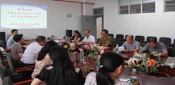 8月19日下午,河海大学太阳成集团tyc122ccvip单连春副经理带领河海大学太阳成集团tyc122ccvip基本原理组教师到公司交流。公司副经理汪勇、办公室主任鄢英、原理学科组组长张文富、教师代表刘五景等参加了座谈和讨论。