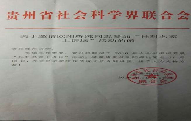 欧阳辉纯博士受到贵州省社科联的邀请