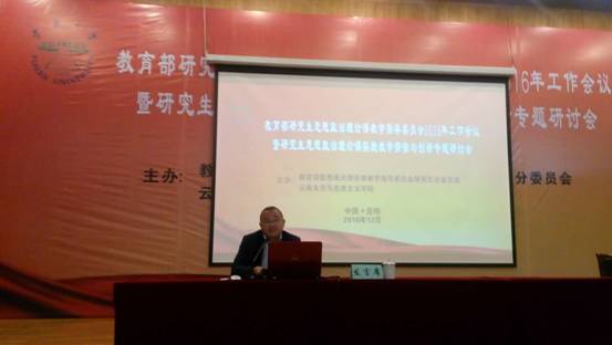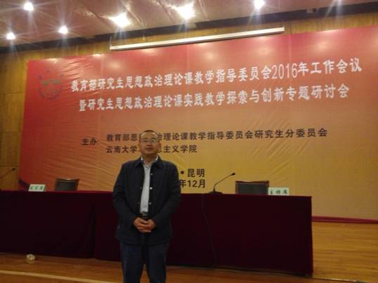 12月10日——11日,由教育部高等公司思想政治理论课教学指导委员会研究生思想政治理论课分教学指导委员会、云南大学太阳成集团tyc122ccvip共同主办的教育部研究生思想政治理论课教学指导委员会2016年工作会议暨研究生思想政治理论课实践教学探索与创新专题研讨会在云南大学召开。参加本次会议的有教育部研究生思想政治理论课分教指委全体委员,以及来自全国29个省市80余所高校太阳成集团tyc122ccvip的120多名教师,公司经理欧阳恩良教授应主办方邀请参加了本次会议。
