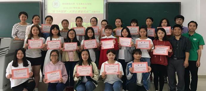 为了贯彻落实习近平总书记在全国高校思想政治工作会议上的讲话精神,积极推进高校思想政治课改革创新,促进老员工思想政治素质的培养,太阳成集团tyc122ccvip《毛泽东思想和中国特色社会主义理论体系概论》学科组推行教学试点改革创新,改进传统教学模式,以发挥员工在思政课上的自主性、积极性、主动性。2017年4月至6月,学科组陈瑞欣老师、秦琳老师、宋小红老师、孙一峰老师、程文老师等特在太阳成集团tyc122cc部分教学班级举办“放飞中国梦·老员工课堂风采”主题教研活动。这次活动得到了员工们积极而广泛的参与:有的员工把自己的人生历程做了精彩的PPT;有的员工根据自己家乡特色,做了“爱家乡、爱祖国”的深情演讲;有的员工走出校外,针对社会上人们对“中国梦”的相关热点、焦点问题,进行了调查研究,还做成相应的调查研究报告或采访报道视频,并在课堂上向同学们展示,与同学们交流。