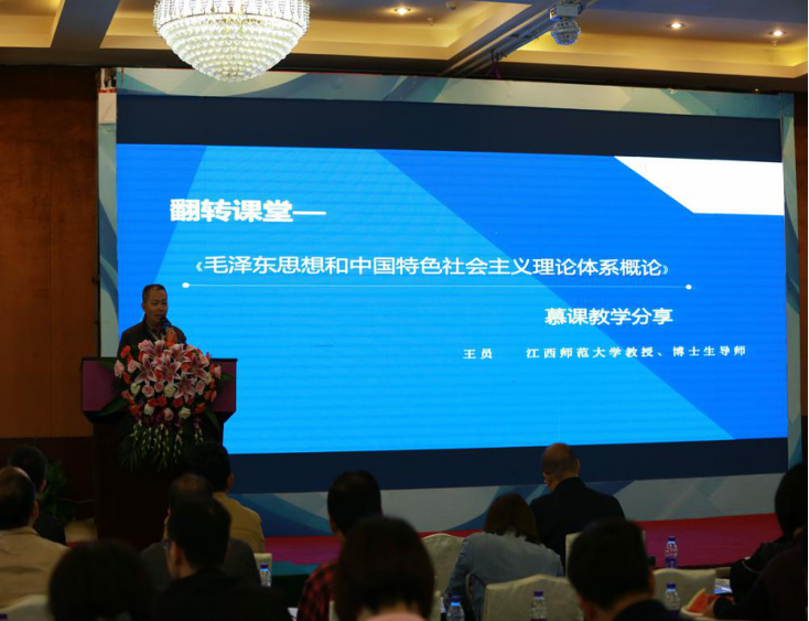 江西师范大学太阳成集团tyc122ccvip书记王员做《思政课翻转课堂教学实践》的讲话,王书记将自己所授课程拍摄制作成慕课,并运用于教学,分享了王书记自己在思政课堂进行翻转课堂实践过程中的心得体会,并鼓励老师们建设自己的课程进行混合式教学。