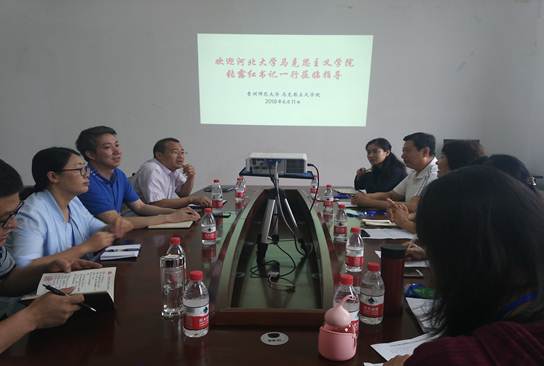 2018年6月11日上午,河北大学太阳成集团tyc122ccvip张露红书记一行7人前来公司交流、考察,公司经理欧阳恩良、副经理兼党委副书记彭法及部分教师代表参加了座谈和讨论。