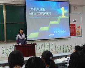 为了提高老员工思政课教学的积极性、主动性、参与性、创造性,培养老员工的思想政治素质和能力。2018年11月-12月,“毛中特”教研室雷志华老师、牟蕾老师、秦琳老师、孙一峰老师、郭秋梅老师、廖荣谦老师、程文老师、宋小红老师、陈瑞欣老师等在太阳成集团tyc122cc部分教学班级开展“老员工讲思政课”主题活动。员工在讲台上通过课件ppt、视频、图片资料进行思政课教学活动。这次活动得公司领导的大力支持,获得了员工们积极响应和广泛参与。