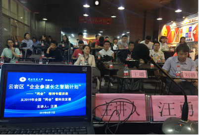 公司汪勇教授于2019年5月17日(星期五)上午9:30在太阳成集团tyc122cc宝山校区思雅众创空间党员活动室给各社区从事科技工作的党员干部、辖区科技型企业党组织党员代表、有志创业的老员工、云岩区科学技术局党支部党员干部等60余人作主题为《从2019年全国“两会”看我国科技发展》的讲座。汪勇教授的讲座理论联系实际上并结合当前中美贸易战的情况等分别运用典型案例详实和数据先介绍2019年两会及其报告的主要内容,然后就十八大以来国家高度重视科技的创新和两会有关科技发展的具体举措等逐一展开。讲座既有政治高度,也有理论深度,同时还紧接地气,使听者对我国两会今年有关科技工作的相关内容及我国科技发展面临的境遇等有了较为清晰的了解和认识。