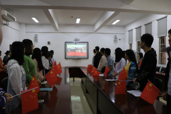 上午八点半,会议室就已经坐满同学,每人手拿一支红旗,满怀期待地见证这一伟大时刻的到来。