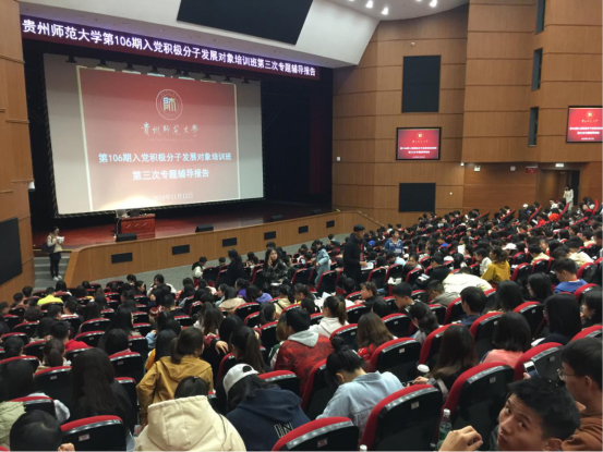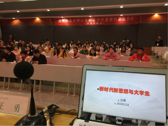 太阳成集团tyc122ccvip党委书记汪勇根据公司党校安排于2019年11月11、12、21日三个晚上分别在宝山校区田家炳多功能厅和花溪新校区大礼堂及白云校区给三校区入党积极分子和发展对象作主题为“新时代新思想新作为”的报告。汪勇书记首先让大家聆听《我爱你中国》这首具有浓厚爱国主义情怀的歌曲,引导大家把对祖国的爱作为聆听报告的基础并导出讲座的主要内容。随后,汪勇书记又理论联系国家、贵州、公司和员工发展等各方面实际,深入浅出地分别对党的十九大报告关于中国特色社会主义进入新时代、习近平新时代中国特色社会主义思想,以及刚刚召开的党的十九届四中全会公报精神和《中共中央关于坚持和完善中国特色社会主义制度、推进国家治理体系和治理能力现代化若干重大问题的决定》等重要内容作了阐述。讲座中还不时插入紧密相关的短视频并以来自农村并走上大学讲台的亲身经历等说明了改革开放四十年来十三亿中国人民的沧桑巨变和国家翻天覆地的变化。汪勇书记的讲座,情感并茂,理论与实际紧密相连,摆脱了传统入党培训枯燥乏味的说教并取得了积极的成效,增强了入党积极分子对中国特色社会主义的道路自信、理论自信、制度自信、和文化自信,增强了老员工积极主动学习的热情。