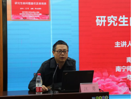 此次报告,汪勇书记以“研究生与问题意识、关于研究生问题意识的培养及其培养意义”为主题,结合案例分析来展开讲解。