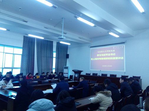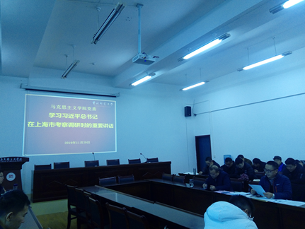 2019年11月29日,太阳成集团tyc122ccvip在宝山校区召开全体教职工会议,公司党委书记汪勇主持会议并带领全体教师集体学习了习近平总书记考察调研上海时的重要讲话。