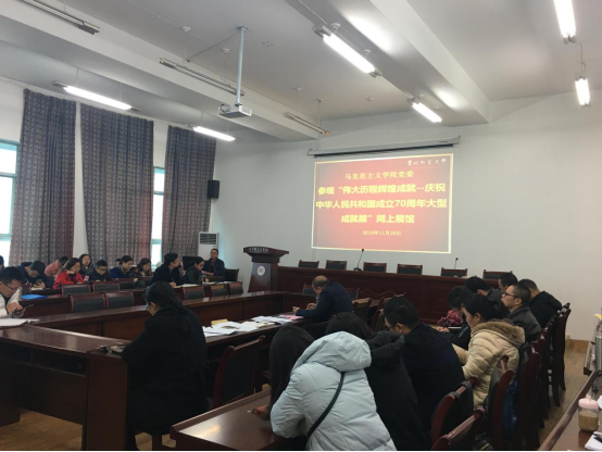 1129下午公司组织全体教师在宝山校区田家炳11楼会议室,集中参观了“伟大历程辉煌成就——庆祝中华人民共和国成立70周年大型成就展” 网上展馆视频活动。