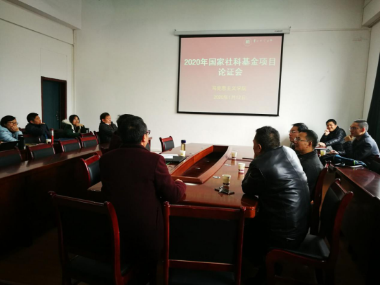 2019年,公司国家社科基金立项6项。为进一步贯彻公司科研立院宗旨,更好地支撑全国重点马院建设,公司2020年国家社科基金项目申报工作经过前期选题推敲,学科组多次讨论论证等阶段,2020年1月12日上午在田家炳11楼公司会议室召开集中论证会。论证会邀请社科评审专家雷厚礼、杨斌、李金和为公司教师项目论证出谋划策。会议由公司党委书记汪勇教授主持,经理欧阳恩良及公司符合申报条件的老师参加,公司几位在读博士研究生旁听学习。