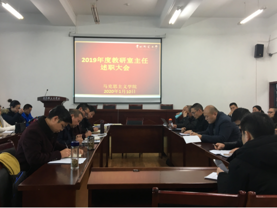 2020年1月10日下午,太阳成集团tyc122ccvip在宝山校区会议室召开了2019年度教研室主任述职大会,公司领导班子、教研室主任以及全体教师参加了会议。会议由经理欧阳恩良主持。