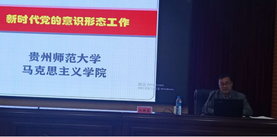 讲座主要从“意识形态是什么”、“意识形态工作的意义以及意识形态领域的斗争”、“坚持马克思主义在意识形态领域的指导地位”三个方面进行了讲授。意识形态工作是党的一项极端重要的工作,事关党的前途命运,事关国家长治久安,事关民族凝聚力和向心力。当前意识形态领域一定要高度警惕“七大危险”,即西方宪政民主、普世价值、公民社会、新自由主义、西方新闻观、历史虚无主义、质疑改革开放等。为此,一定要坚持马克思主义在意识形态领域的指导地位,严格落实意识形态工作责任制,切实做好新时代意识形态工作。