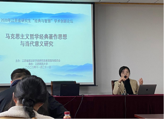 2020年11月21日,王雯雯同学应邀顺路参加了江苏省研究生“经典与智慧”学术创新论坛,并在“马克思主义哲学经典著作思想与当代意义研究”分论坛上做了《马克思主义经典作家党的思想纯洁性理论及启示》的发言。