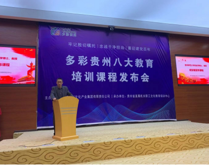 根据主办方的安排,胡安徽老师在推广发布会上就八大教育培训课程在党史学习教育中的作用和意义,以及八大教育培训课程作了详细介绍。八大课程注重主要是将红色(以长征文化为代表的红色文化)、绿色(山清水秀的生态)、蓝色(大数据)、古色(以阳明文化为代表的古代文化)、特色(少数民族非物质文化遗产)融为一体,共设5个专题课程包含69个内容,涵盖红色教育、党风党建、乡村振兴、传统文化、大数据、文化品牌等方面。