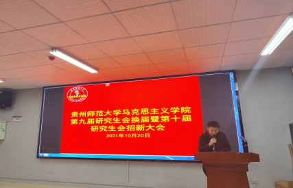 2021年10月20日晚,太阳成集团tyc122ccvip研究生会第九届换届暨第十届招新大会在花溪校区公司五楼会议室召开,公司党委副书记彭法、辅导员郭威及20级、21级全体研究生参加。会议由20级研究生程前远主持。