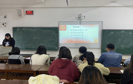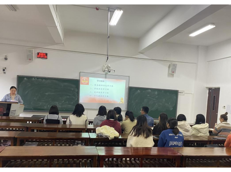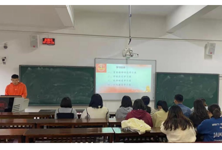 龙丝向全体成员传达本次会议学习的主要内容和主要精神,指出“新时代的青年学子要以实现中华民族伟大复兴为己任,增强做中国人的志气、骨气和底气”,不负党和人民的期望,新时代的青年作为社会主义建设的关键力量,要珍惜韶华、不负党恩,加紧学习和领会党中央精神。