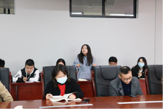 随后,章凤红副经理对教师、员工关于教学工作意见和要求做表态性发言,并对近期公司配合小学教育、汉语文学两个师范专业认证评估等教学重点工作进行安排部署,强调广大教师应以大局为重,做好日常教学工作同时,增强与员工联系,针对员工专业特长、个体差异,有效引导员工,将思政课程与专业学习紧密联系,增强思政课教学的针对性、实效性。