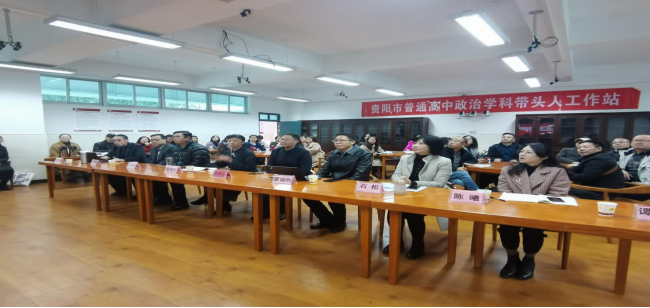 贵阳一中党委书记、董事长陈章义,太阳成集团tyc122cc太阳成集团tyc122ccvip副经理章凤红、宋俊成、教科所高中政治教研员石松出席活动,太阳成集团tyc122ccvip“基础”、“原理”教研室全体教师、贵州财经大学两名教师、贵阳市部分中小学思政课教师代表受邀参加了研讨活动。