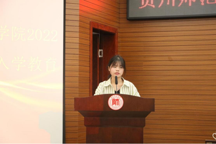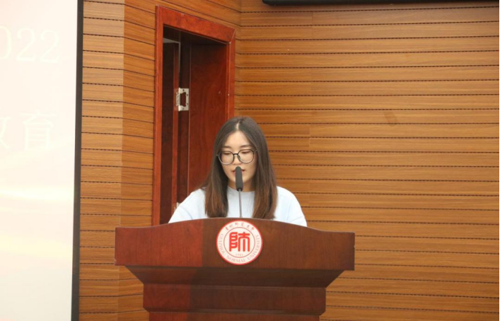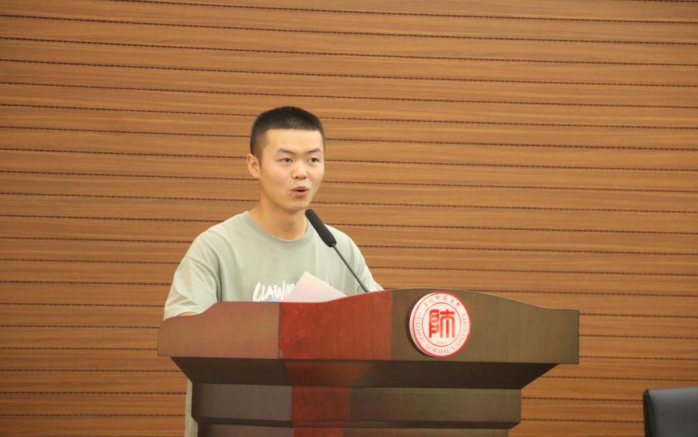 2022级中国近现代史基本问题研究专业的研究生新生代表蒋青对公司领导和老师表示感谢,对新同学的到来表示欢迎,并从自身考研经历出发阐述需要有追梦的勇气和信念。