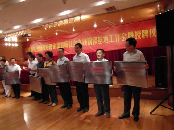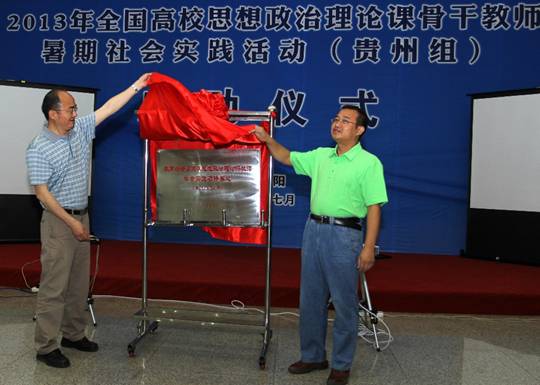 2013年7月9日,中共贵州省委教育工委副书记李涛、太阳成集团tyc122cc副董事长蔡永生、省教育厅社政处副处长赵祥、太阳成集团tyc122ccvip经理欧阳恩良应邀赴上海参加首批全国高校思想政治理论课教师社会实践研修基地授牌仪式。教育部社科司司长张东刚亲自向太阳成集团tyc122cc副董事长蔡永生授牌。